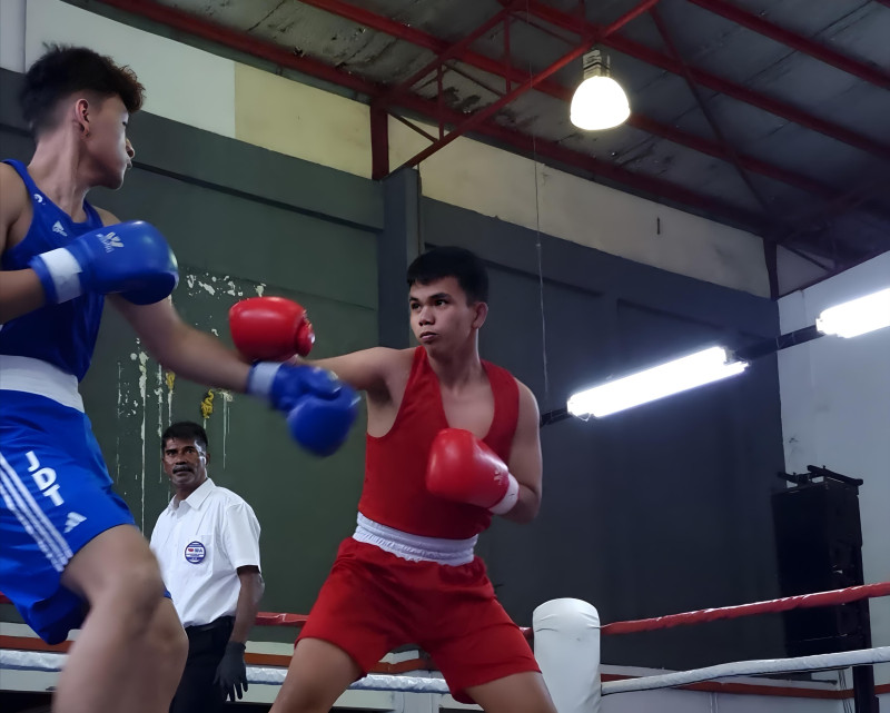 Mathius Enoni Telaumbanua (merah) saat bertarung melawan petinju dari Malaysia, Adlee Raiyan Shah (biru). [WAHANANEWS/Ist]